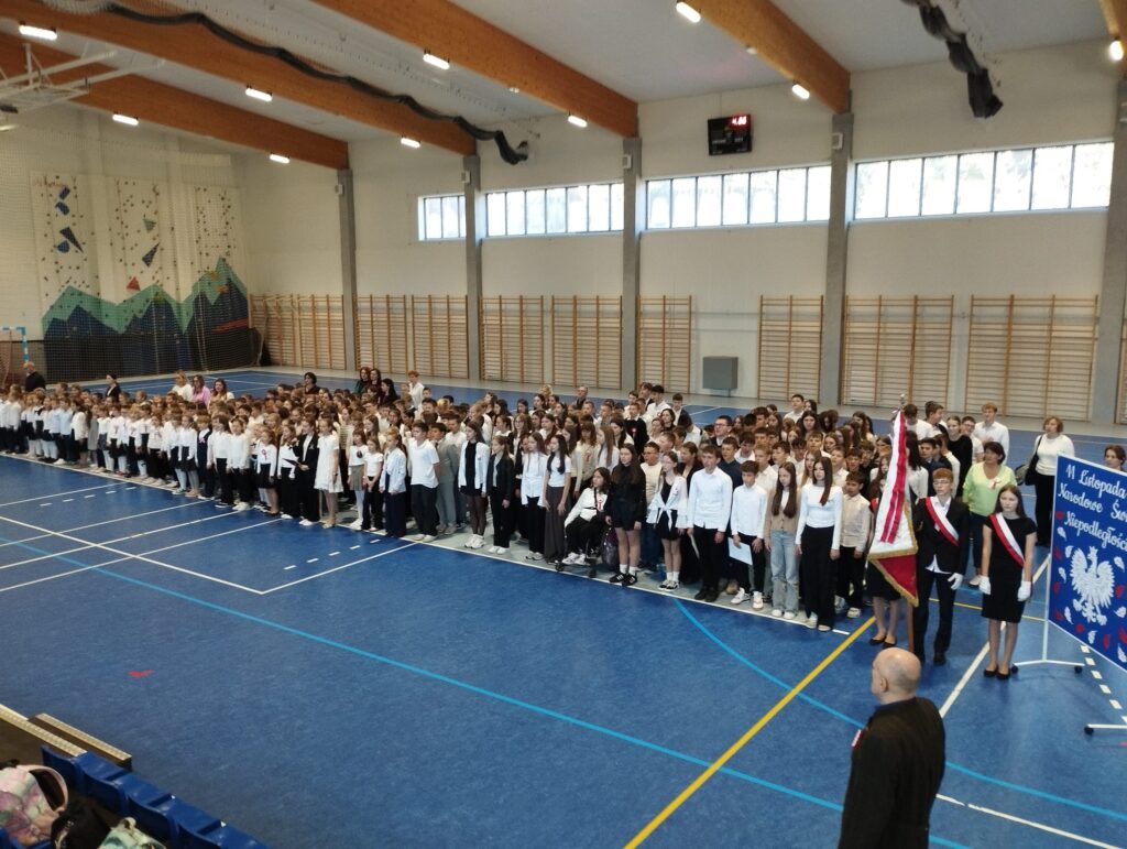 7 listopada 2025 roku, nasza szkoła włączyła się w ogólnopolską akcję „Szkoła do hymnu”, organizowaną przez Ministerstwo Edukacji Narodowej jako jedną z form obchodów Święta Niepodległości. Uczniowie klas I – VIII, Oddziały Przedszkolne oraz nauczyciele wspólnie odśpiewali 4 zwrotki hymnu narodowego, wyrażając w ten sposób patriotyzm.