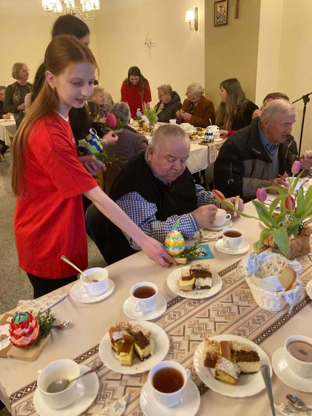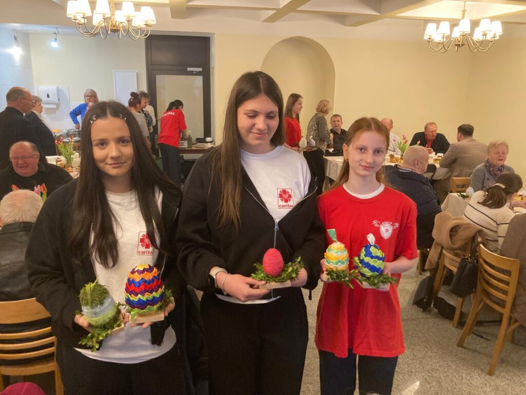 Dnia 30 marca 2026 roku Szkolne Koło CARITAS uczestniczyło w wielkanocnym Dniu Chorego. Po Mszy Świętej odbyło się spotkane dla seniorów w odremontowanej sali pod kościołem. Ten dzień to wyjątkowy czas, w którym zamiast na cierpieniu, skupiamy się na nadziei i wspólnocie. To moment, który przypomina, że nikt nie powinien przeżywać trudności w samotności. Wielkanoc to święto życia zwyciężającego śmierć. Dla osób chorych to szczególny znak. Na spotkaniu Wolontariusze złożyli osobom starszym i chorym wielkanocne życzenia oraz wręczyli własnoręcznie wykonanie jajka i kartki świąteczne.